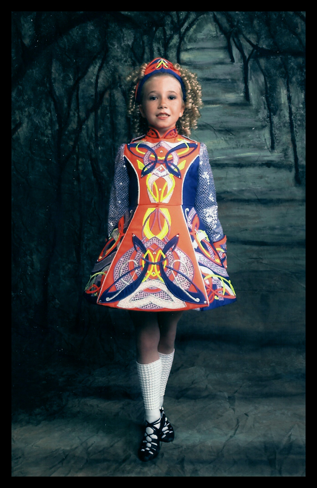 Solo dresses are usually made out of high quality fabrics, such as heavy satin or velvet. They are traditionally embroidered with elaborate designs taken from the Book of Kells and accented with rhinestones, sequins, and all things glittery. For competitions, there are rules surrounding the dresses, and performance in the competition can be affected by the dress. The dress always has a cape in back, long sleeves, high neckline, and skirt above the knee. Styles and fashions for the dresses are constantly changing, most recently with increasing amounts of sparkles, brighter colors, and shorter skirts. A few examples of past and current styles: